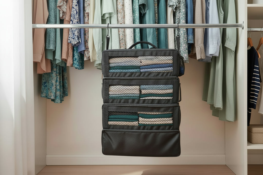 Un organisateur de valise pensé pour simplifier vos déplacements. Vos vêtements restent pliés, visibles et accessibles, pour des départs plus sereins et des arrivées sans désordre. Moins de fouille, plus de confort.